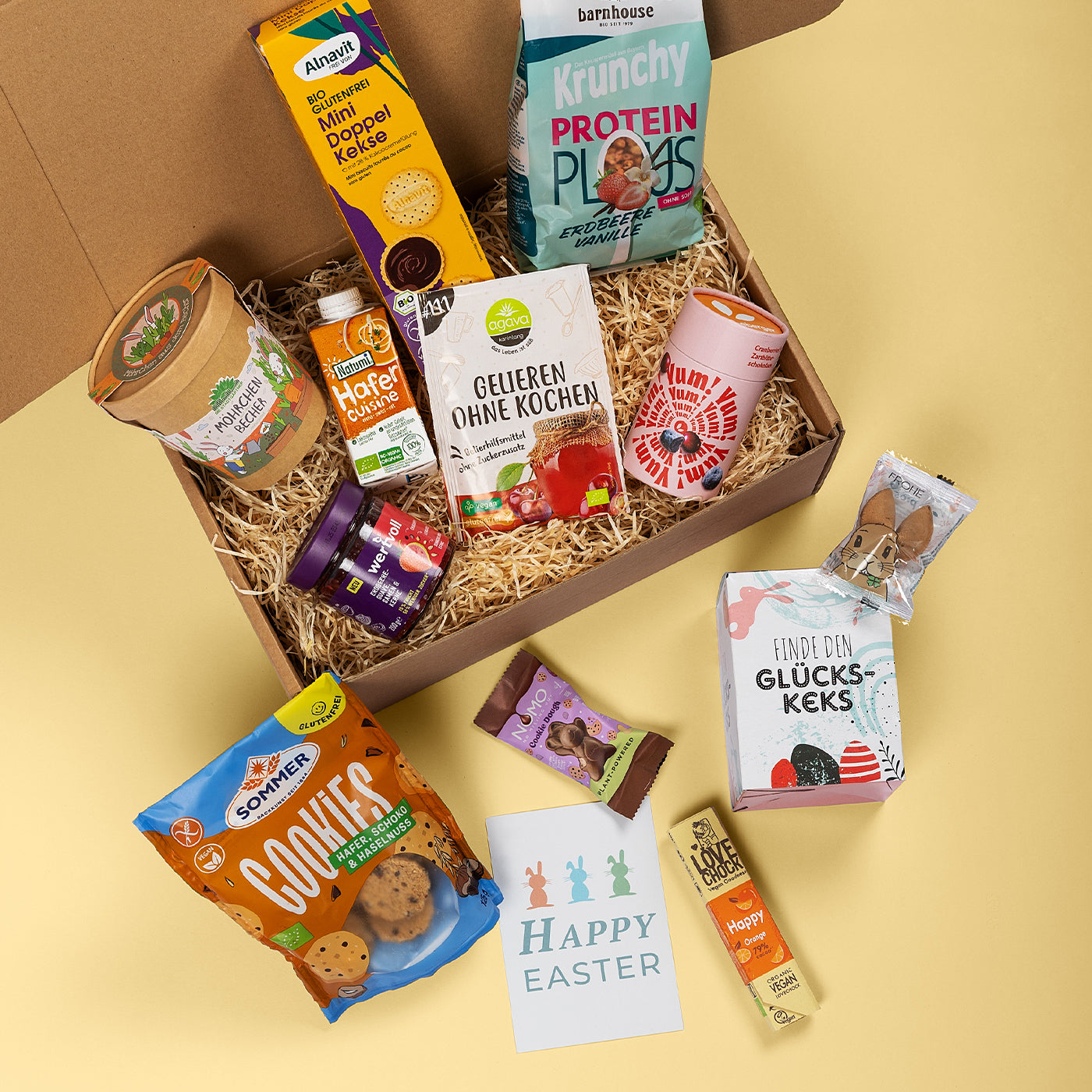 Wenn sich die ersten warmen Sonnenstrahlen zeigen, ist Ostern nicht mehr weit: Überrasche dich oder deine Liebsten mit unserer Geschenk Box zu Ostern und feiert gemeinsam vegane Ostern!